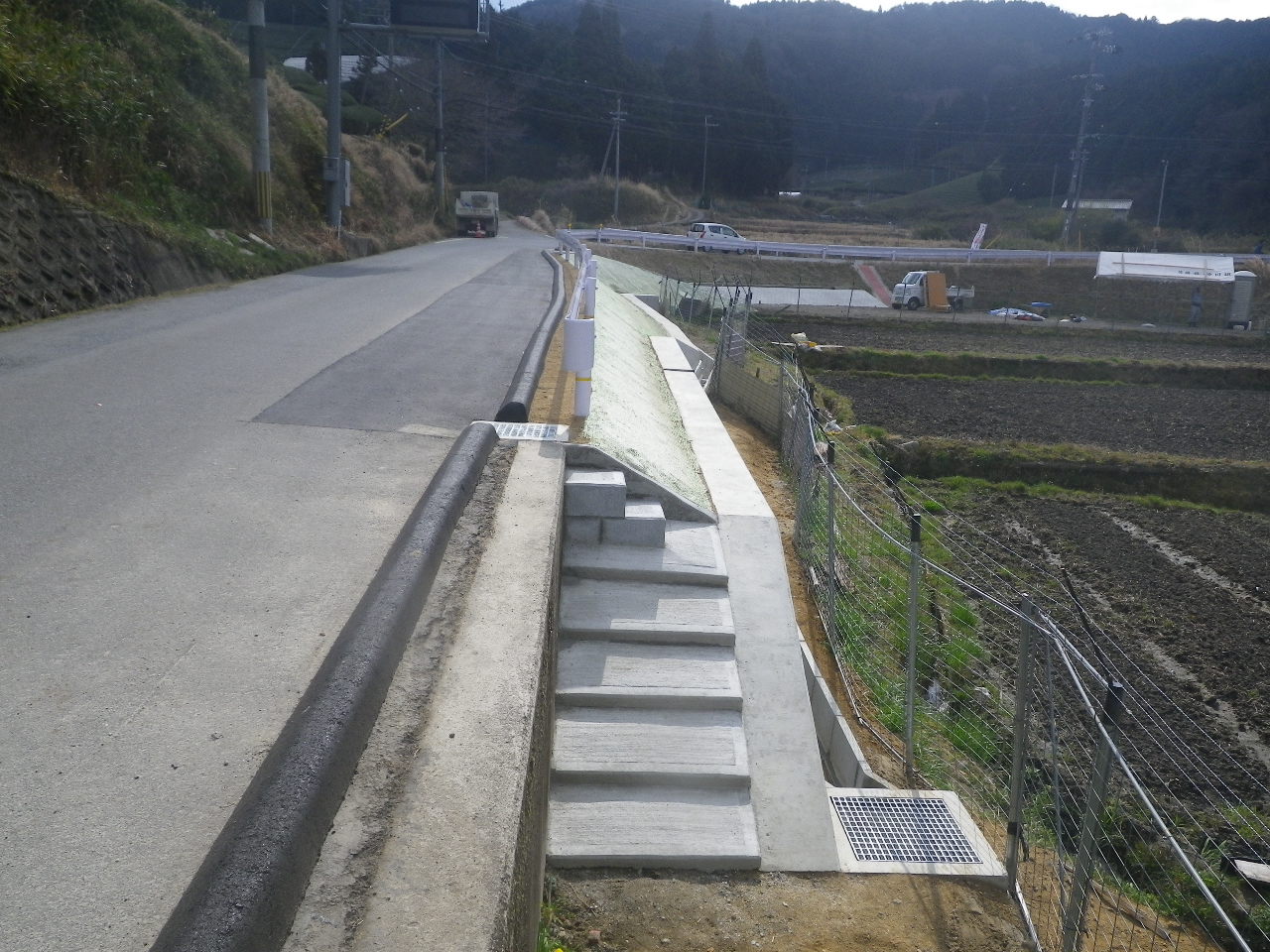 今月は府道拡幅工事が完成し竣工検査を受け、無事に引き渡し致しました。