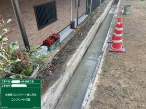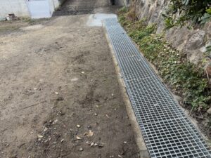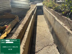 此方の現場は町内を流れる水路で以前は農地への送水また消火用や雨水等を流すための所謂生活水路で、今回の改修では取り外しが困難になったコンクリート製のふたからグレーチング蓋に取替え、排水不良個所の水路床やひび割れ補修等を施工しました。