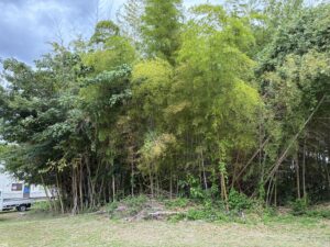 此方の現場は約1,000㎡に密生した竹と雑木を伐採し現地で粉砕処理を致します。