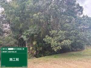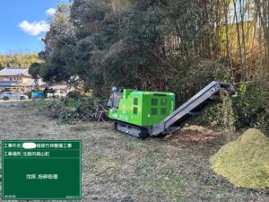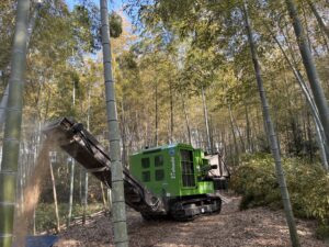 竹チップを敷均し綺麗になった様子に、お施主様からは「今シーズンのタケノコ掘りが楽しみです」と